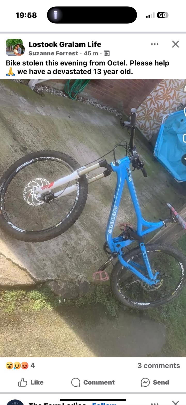 One of our dear friends and customers of our pub has had there teenagers bike stolen today….. has anyone got any information? If so please PM our page, thank you 👍 Suzanne Forrest