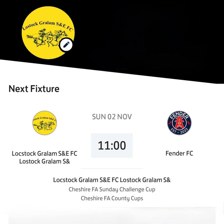 Last 16 of the Cheshire Cup, Sunday 2nd November, 11am kick off, The Park Stadium, Manchester Road, Lostock. (Behind our pub)