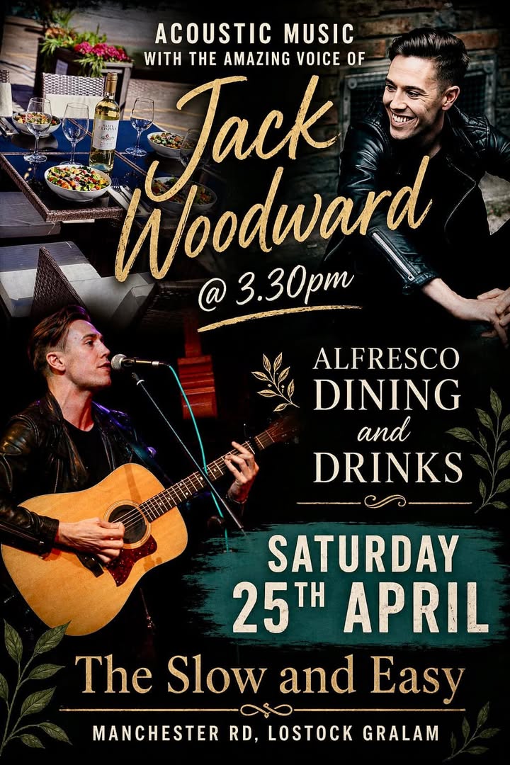 🎤 Join us from 3.30pm for live acoustic music in our garden terrace when the incredible Jack Woodward will be performing a 2 hour set of acoustic music.