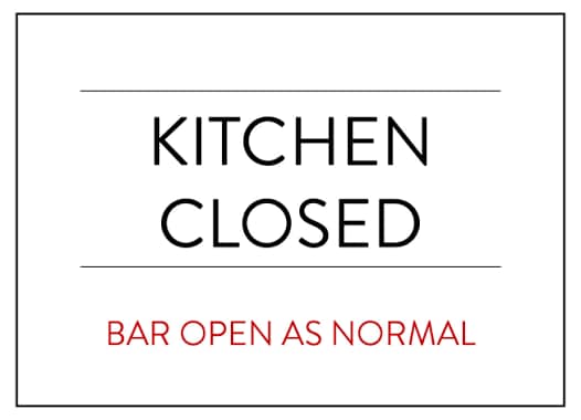 A reminder that our kitchen is closed for 4 days for a deep clean, food will be served as normal from 12 noon Friday 9th January